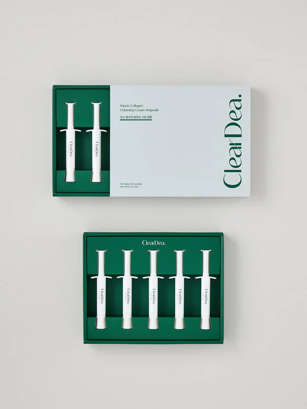 Enhance hydration, firmness, and skin radiance with the ClearDea Mucin Collagen Voluming Cream Ampoule. This cream-ampoule hybrid is formulated with multiple types of collagen—including atelocollagen, hydrolyzed collagen, and soluble collagen—to boost elasticity, smooth texture, and reduce the appearance of fine lines.