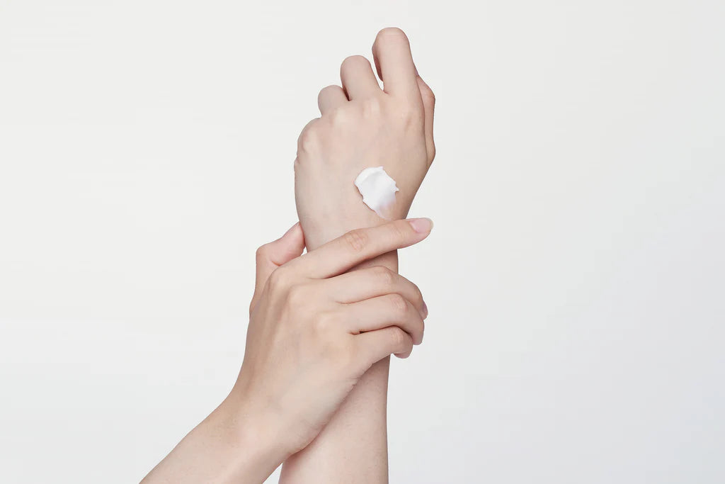 After cleansing, toning, and applying serums, scoop a moderate amount.